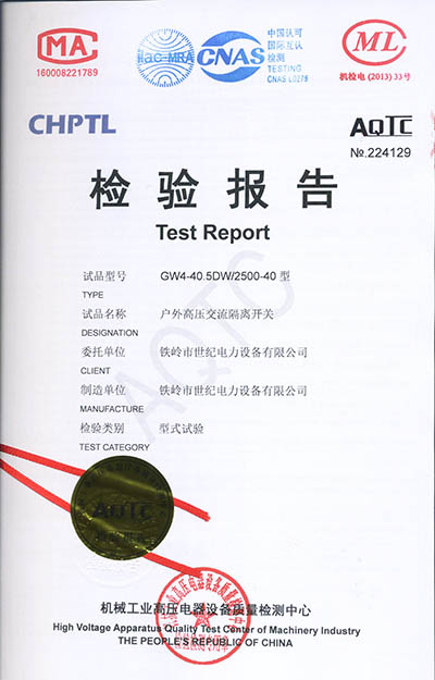 戶外高壓交流隔離開(kāi)關(guān)檢驗(yàn)報(bào)告