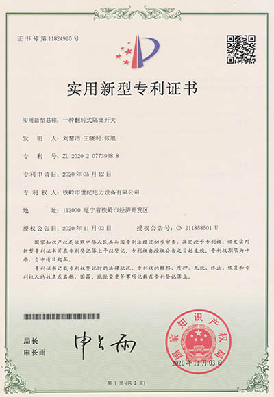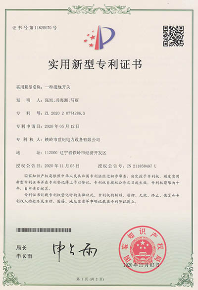 實(shí)用新型專利證書